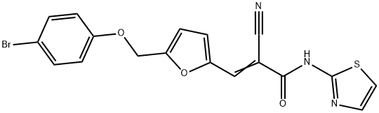 - Synonyms: (E)-3-[5-[(4-bromophenoxy)methyl]furan-2-yl]-2-cyano-N-(1,3-thiazol-2-yl)prop-2-enamide 2-Propenamide, 3-[5-[(4-bromophenoxy)methyl]-2-furanyl]-2-cyano-N-2-thiazolyl-