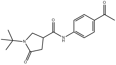 - Synonyms: N-(4-acetylphenyl)-1-tert-butyl-5-oxopyrrolidine-3-carboxamide 3-Pyrrolidinecarboxamide, N-(4-acetylphenyl)-1-(1,1-dimethylethyl)-5-oxo-
