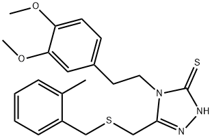 - Synonyms: 4-[2-(3,4-dimethoxyphenyl)ethyl]-3-[(2-methylphenyl)methylsulfanylmethyl]-1H-1,2,4-triazole-5-thione 3H-1,2,4-Triazole-3-thione, 4-[2-(3,4-dimethoxyphenyl)ethyl]-2,4-dihydro-5-[[[(2-methylphenyl)methyl]thio]methyl]-