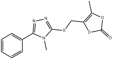 - Synonyms: 4-methyl-5-[(4-methyl-5-phenyl-1,2,4-triazol-3-yl)sulfanylmethyl]-1,3-dioxol-2-one 1,3-Dioxol-2-one, 4-methyl-5-[[(4-methyl-5-phenyl-4H-1,2,4-triazol-3-yl)thio]methyl]-
