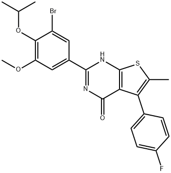 - Synonyms: 2-(3-bromo-5-methoxy-4-propan-2-yloxyphenyl)-5-(4-fluorophenyl)-6-methyl-3H-thieno[2,3-d]pyrimidin-4-one Thieno[2,3-d]pyrimidin-4(1H)-one, 2-[3-bromo-5-methoxy-4-(1-methylethoxy)phenyl]-5-(4-fluorophenyl)-6-methyl-