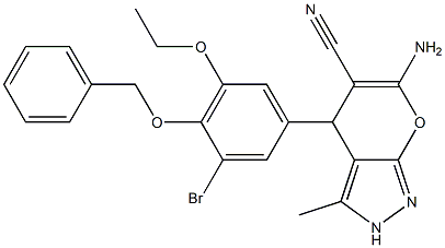 - Product Name:6-amino-4-(3-bromo-5-ethoxy-4-phenylmethoxyphenyl)-3-methyl-2,4-dihydropyrano[2,3-c]pyrazole-5-carbonitrile