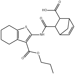 - Synonyms: 2-[(3-propoxycarbonyl-4,5,6,7-tetrahydro-1-benzothiophen-2-yl)carbamoyl]bicyclo[2.2.1]hept-5-ene-3-carboxylic acid Benzo[b]thiophene-3-carboxylic acid, 2-[[(3-carboxybicyclo[2.2.1]hept-5-en-2-yl)carbonyl]amino]-4,5,6,7-tetrahydro-, 3-propyl ester