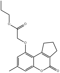- Synonyms: propyl 2-[(7-methyl-4-oxo-2,3-dihydro-1H-cyclopenta[c]chromen-9-yl)oxy]acetate Acetic acid, 2-[(1,2,3,4-tetrahydro-7-methyl-4-oxocyclopenta[c][1]benzopyran-9-yl)oxy]-, propyl ester