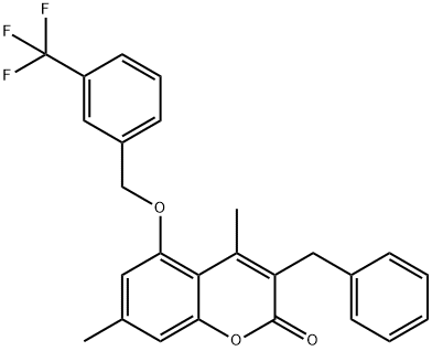 - Synonyms: 3-benzyl-4,7-dimethyl-5-[[3-(trifluoromethyl)phenyl]methoxy]chromen-2-one 2H-1-Benzopyran-2-one, 4,7-dimethyl-3-(phenylmethyl)-5-[[3-(trifluoromethyl)phenyl]methoxy]-