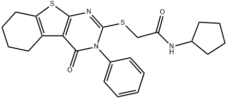 - Synonyms: N-cyclopentyl-2-[(4-oxo-3-phenyl-5,6,7,8-tetrahydro-[1]benzothiolo[2,3-d]pyrimidin-2-yl)sulfanyl]acetamide Acetamide, N-cyclopentyl-2-[(3,4,5,6,7,8-hexahydro-4-oxo-3-phenyl[1]benzothieno[2,3-d]pyrimidin-2-yl)thio]-