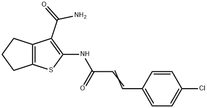 - Synonyms: 2-[[(E)-3-(4-chlorophenyl)prop-2-enoyl]amino]-5,6-dihydro-4H-cyclopenta[b]thiophene-3-carboxamide 4H-Cyclopenta[b]thiophene-3-carboxamide, 2-[[3-(4-chlorophenyl)-1-oxo-2-propen-1-yl]amino]-5,6-dihydro-
