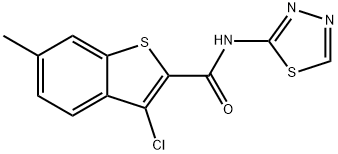- Synonyms: 3-chloro-6-methyl-N-(1,3,4-thiadiazol-2-yl)-1-benzothiophene-2-carboxamide Benzo[b]thiophene-2-carboxamide, 3-chloro-6-methyl-N-1,3,4-thiadiazol-2-yl-