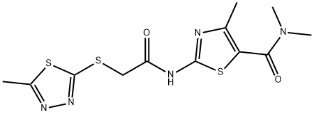 - Synonyms: N,N,4-trimethyl-2-[[2-[(5-methyl-1,3,4-thiadiazol-2-yl)sulfanyl]acetyl]amino]-1,3-thiazole-5-carboxamide 5-Thiazolecarboxamide, N,N,4-trimethyl-2-[[2-[(5-methyl-1,3,4-thiadiazol-2-yl)thio]acetyl]amino]-