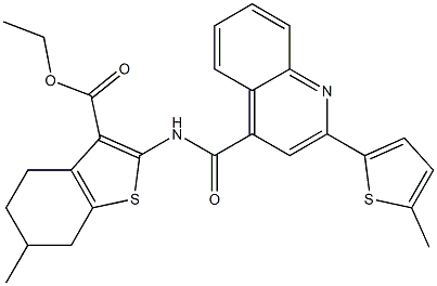- Synonyms: ethyl 6-methyl-2-[[2-(5-methylthiophen-2-yl)quinoline-4-carbonyl]amino]-4,5,6,7-tetrahydro-1-benzothiophene-3-carboxylate