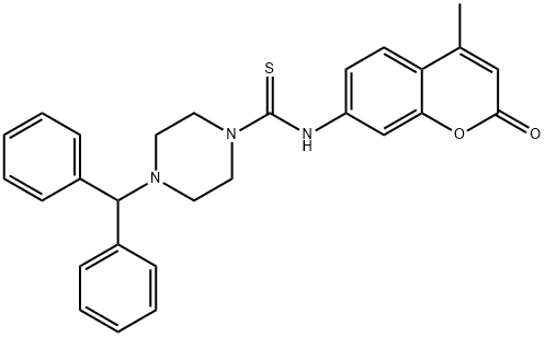 - Synonyms: 4-benzhydryl-N-(4-methyl-2-oxochromen-7-yl)piperazine-1-carbothioamide 1-Piperazinecarbothioamide, 4-(diphenylmethyl)-N-(4-methyl-2-oxo-2H-1-benzopyran-7-yl)-