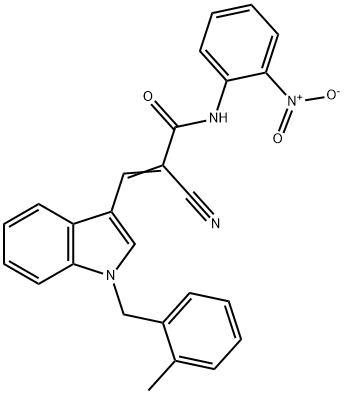 - Synonyms: (E)-2-cyano-3-[1-[(2-methylphenyl)methyl]indol-3-yl]-N-(2-nitrophenyl)prop-2-enamide 2-Propenamide, 2-cyano-3-[1-[(2-methylphenyl)methyl]-1H-indol-3-yl]-N-(2-nitrophenyl)-
