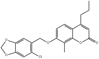 - Synonyms: 7-[(6-chloro-1,3-benzodioxol-5-yl)methoxy]-8-methyl-4-propylchromen-2-one 2H-1-Benzopyran-2-one, 7-[(6-chloro-1,3-benzodioxol-5-yl)methoxy]-8-methyl-4-propyl-