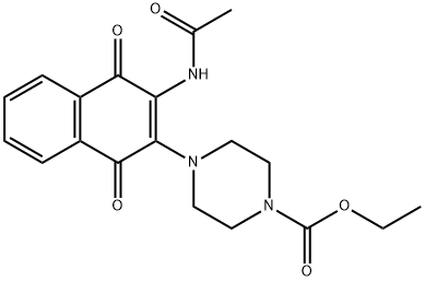 - Synonyms: ethyl 4-(3-acetamido-1,4-dioxonaphthalen-2-yl)piperazine-1-carboxylate 1-Piperazinecarboxylic acid, 4-[3-(acetylamino)-1,4-dihydro-1,4-dioxo-2-naphthalenyl]-, ethyl ester