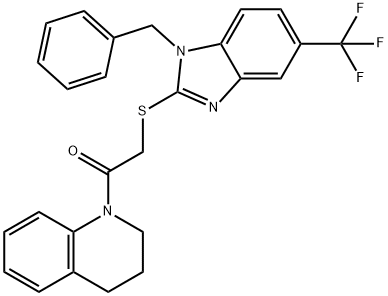 - Synonyms: 2-[1-benzyl-5-(trifluoromethyl)benzimidazol-2-yl]sulfanyl-1-(3,4-dihydro-2H-quinolin-1-yl)ethanone Ethanone, 1-(3,4-dihydro-1(2H)-quinolinyl)-2-[[1-(phenylmethyl)-5-(trifluoromethyl)-1H-benzimidazol-2-yl]thio]-