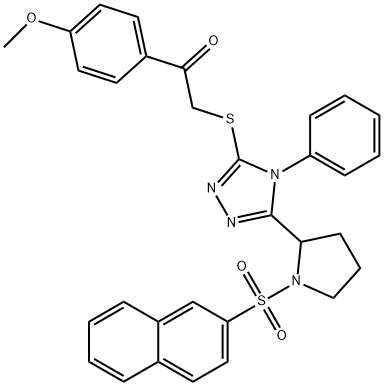 - Synonyms: 1-(4-methoxyphenyl)-2-[[5-(1-naphthalen-2-ylsulfonylpyrrolidin-2-yl)-4-phenyl-1,2,4-triazol-3-yl]sulfanyl]ethanone Ethanone, 1-(4-methoxyphenyl)-2-[[5-[1-(2-naphthalenylsulfonyl)-2-pyrrolidinyl]-4-phenyl-4H-1,2,4-triazol-3-yl]thio]-