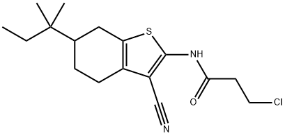 - Synonyms: 3-chloro-N-[3-cyano-6-(2-methylbutan-2-yl)-4,5,6,7-tetrahydro-1-benzothiophen-2-yl]propanamide Propanamide, 3-chloro-N-[3-cyano-6-(1,1-dimethylpropyl)-4,5,6,7-tetrahydrobenzo[b]thien-2-yl]-