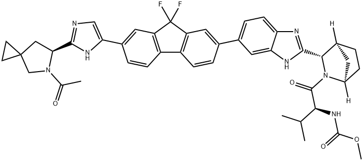 - Product Name:Carbamic acid, N-[(1S)-1-[[(1R,3S,4S)-3-[6-[7-[2-[(6S)-5-acetyl-5-azaspiro[2.4]hept-6-yl]-1H-imidazol-5-yl]-9,9-difluoro-9H-fluoren-2-yl]-1H-benzimidazol-2-yl]-2-azabicyclo[2.2.1]hept-2-yl]carbonyl]-2-methylpropyl]-, methyl ester