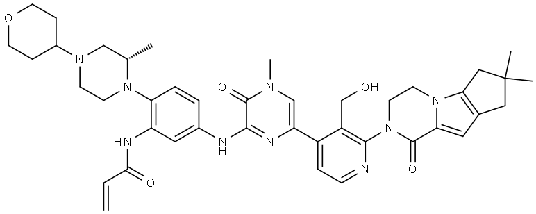 - Product Name:(S)-N-[5-[[6-[2-[7,7-Dimethyl-1-oxo-3,4,7,8-tetrahydro-1H-cyclopenta[4,5]pyrrolo[1,2-a]pyrazin-2(6H)-yl]-3-(hydroxymethyl)-4-pyridyl]-4-methyl-3-oxo-3,4-dihydro-2-pyrazinyl]amino]-2-[2-methyl-4-(tetrahydro-2H-pyran-4-yl)piperazin-1-yl]phenyl]acrylamide