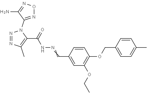 - Synonyms: 1-(4-AMINO-1,2,5-OXADIAZOL-3-YL)-N'-((E)-{3-ETHOXY-4-[(4-METHYLBENZYL)OXY]PHENYL}METHYLIDENE)-4-METHYL-1H-1,2,3-TRIAZOLE-5-CARBOHYDRAZIDE 1H-1,2,3-Triazole-5-carboxylic acid, 1-(4-amino-1,2,5-oxadiazol-3-yl)-4-methyl-, 2-[[3-ethoxy-4-[(4-methylphenyl)methoxy]phenyl]methylene]hydrazide 1-(4-AMINO-1,2,5-OXADIAZOL-3-YL)-N'-((E)-{3-ETHOXY-4-[(4-METHYLBENZYL)OXY]PHENYL}METHYLIDENE)-4-METHYL-1H-1,2,3-TRIAZOLE-5-CARBOHYDRAZIDE
