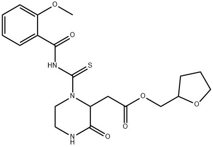 - Synonyms: tetrahydro-2-furanylmethyl (1-{[(2-methoxybenzoyl)amino]carbonothioyl}-3-oxo-2-piperazinyl)acetate 2-Piperazineacetic acid, 1-[[(2-methoxybenzoyl)amino]thioxomethyl]-3-oxo-, (tetrahydro-2-furanyl)methyl ester