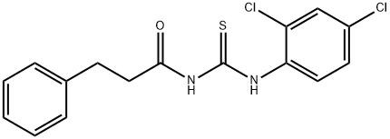 - Synonyms: Benzenepropanamide, N-[[(2,4-dichlorophenyl)amino]thioxomethyl]- N-[(2,4-dichlorophenyl)carbamothioyl]-3-phenylpropanamide N-{[(2,4-dichlorophenyl)amino]carbonothioyl}-3-phenylpropanamide