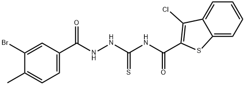 - Synonyms: N-{[2-(3-bromo-4-methylbenzoyl)hydrazino]carbonothioyl}-3-chloro-1-benzothiophene-2-carboxamide Benzoic acid, 3-bromo-4-methyl-, 2-[[[(3-chlorobenzo[b]thien-2-yl)carbonyl]amino]thioxomethyl]hydrazide