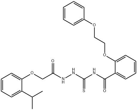 - Synonyms: N-({2-[(2-isopropylphenoxy)acetyl]hydrazino}carbonothioyl)-2-(2-phenoxyethoxy)benzamide Acetic acid, 2-[2-(1-methylethyl)phenoxy]-, 2-[[[2-(2-phenoxyethoxy)benzoyl]amino]thioxomethyl]hydrazide