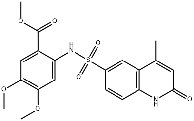 - Synonyms: methyl 4,5-dimethoxy-2-{[(4-methyl-2-oxo-1,2-dihydro-6-quinolinyl)sulfonyl]amino}benzoate Benzoic acid, 2-[[(1,2-dihydro-4-methyl-2-oxo-6-quinolinyl)sulfonyl]amino]-4,5-dimethoxy-, methyl ester