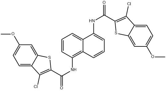 - Synonyms: N,N'-1,5-naphthalenediylbis(3-chloro-6-methoxy-1-benzothiophene-2-carboxamide) Benzo[b]thiophene-2-carboxamide, N,N'-1,5-naphthalenediylbis[3-chloro-6-methoxy-