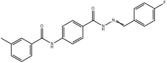 - Synonyms: N-(4-{[2-(4-fluorobenzylidene)hydrazino]carbonyl}phenyl)-3-methylbenzamide N-(4-{[(2E)-2-(4-fluorobenzylidene)hydrazinyl]carbonyl}phenyl)-3-methylbenzamide Benzoic acid, 4-[(3-methylbenzoyl)amino]-, 2-[(4-fluorophenyl)methylene]hydrazide