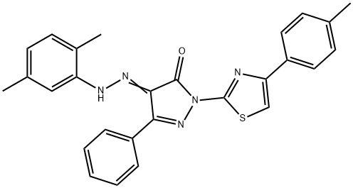 - Synonyms: 4-[(2,5-dimethylphenyl)hydrazono]-2-[4-(4-methylphenyl)-1,3-thiazol-2-yl]-5-phenyl-2,4-dihydro-3H-pyrazol-3-one (4Z)-4-[2-(2,5-dimethylphenyl)hydrazinylidene]-2-[4-(4-methylphenyl)-1,3-thiazol-2-yl]-5-phenyl-2,4-dihydro-3H-pyrazol-3-one 1H-Pyrazole-4,5-dione, 1-[4-(4-methylphenyl)-2-thiazolyl]-3-phenyl-, 4-[2-(2,5-dimethylphenyl)hydrazone]