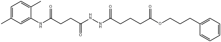 - Synonyms: 3-phenylpropyl 5-[2-[4-(2,5-dimethylanilino)-4-oxobutanoyl]hydrazinyl]-5-oxopentanoate 3-phenylpropyl 5-(2-{4-[(2,5-dimethylphenyl)amino]-4-oxobutanoyl}hydrazino)-5-oxopentanoate Pentanedioic acid, 1-(3-phenylpropyl) ester, 5-[2-[4-[(2,5-dimethylphenyl)amino]-1,4-dioxobutyl]hydrazide]