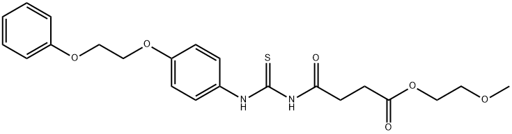 - Synonyms: 2-methoxyethyl 4-oxo-4-[[4-(2-phenoxyethoxy)phenyl]carbamothioylamino]butanoate 2-methoxyethyl 4-oxo-4-[({[4-(2-phenoxyethoxy)phenyl]amino}carbonothioyl)amino]butanoate Butanoic acid, 4-oxo-4-[[[[4-(2-phenoxyethoxy)phenyl]amino]thioxomethyl]amino]-, 2-methoxyethyl ester