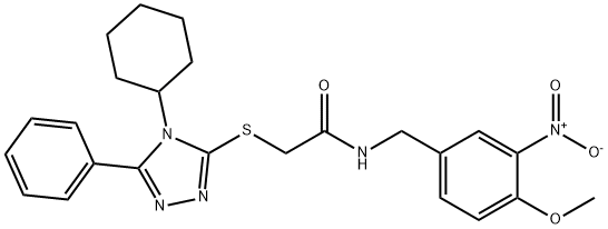 - Synonyms: 2-[(4-cyclohexyl-5-phenyl-4H-1,2,4-triazol-3-yl)sulfanyl]-N-(4-methoxy-3-nitrobenzyl)acetamide Acetamide, 2-[(4-cyclohexyl-5-phenyl-4H-1,2,4-triazol-3-yl)thio]-N-[(4-methoxy-3-nitrophenyl)methyl]-