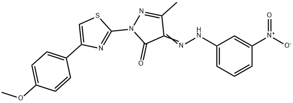 - Synonyms: 2-[4-(4-methoxyphenyl)-1,3-thiazol-2-yl]-5-methyl-4-[(3-nitrophenyl)hydrazono]-2,4-dihydro-3H-pyrazol-3-one 1H-Pyrazole-4,5-dione, 1-[4-(4-methoxyphenyl)-2-thiazolyl]-3-methyl-, 4-[2-(3-nitrophenyl)hydrazone]