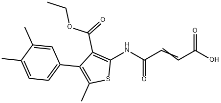 - Synonyms: (E)-4-[[4-(3,4-dimethylphenyl)-3-ethoxycarbonyl-5-methylthiophen-2-yl]amino]-4-oxobut-2-enoic acid 3-Thiophenecarboxylic acid, 2-[(3-carboxy-1-oxo-2-propen-1-yl)amino]-4-(3,4-dimethylphenyl)-5-methyl-, 3-ethyl ester