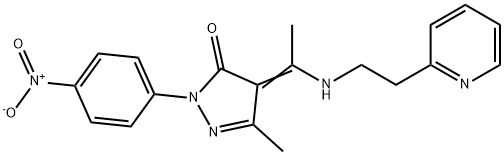 - Synonyms: (4E)-5-methyl-2-(4-nitrophenyl)-4-(1-{[2-(pyridin-2-yl)ethyl]amino}ethylidene)-2,4-dihydro-3H-pyrazol-3-one 3H-Pyrazol-3-one, 2,4-dihydro-5-methyl-2-(4-nitrophenyl)-4-[1-[[2-(2-pyridinyl)ethyl]amino]ethylidene]-