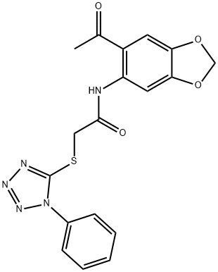 - Synonyms: N-(6-acetyl-1,3-benzodioxol-5-yl)-2-[(1-phenyl-1H-tetrazol-5-yl)sulfanyl]acetamide Acetamide, N-(6-acetyl-1,3-benzodioxol-5-yl)-2-[(1-phenyl-1H-tetrazol-5-yl)thio]-