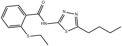 - Synonyms: N-(5-butyl-1,3,4-thiadiazol-2-yl)-2-(ethylsulfanyl)benzamide Benzamide, N-(5-butyl-1,3,4-thiadiazol-2-yl)-2-(ethylthio)-