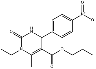 - Synonyms: propyl 1-ethyl-6-methyl-4-(4-nitrophenyl)-2-oxo-1,2,3,4-tetrahydropyrimidine-5-carboxylate 5-Pyrimidinecarboxylic acid, 1-ethyl-1,2,3,4-tetrahydro-6-methyl-4-(4-nitrophenyl)-2-oxo-, propyl ester