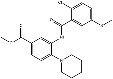 - Synonyms: methyl 3-(2-chloro-5-(methylthio)benzamido)-4-(piperidin-1-yl)benzoate Benzoic acid, 3-[[2-chloro-5-(methylthio)benzoyl]amino]-4-(1-piperidinyl)-, methyl ester
