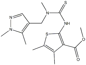 588710-88-7(methyl 2-(3-((1,5-dimethyl-1H-pyrazol-4-yl)methyl)-3-methylthioureido)-4,5-dimethylthiophene-3-carboxylate)