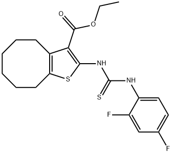 - Synonyms: ethyl 2-(3-(2,4-difluorophenyl)thioureido)-4,5,6,7,8,9-hexahydrocycloocta[b]thiophene-3-carboxylate Cycloocta[b]thiophene-3-carboxylic acid, 2-[[[(2,4-difluorophenyl)amino]thioxomethyl]amino]-4,5,6,7,8,9-hexahydro-, ethyl ester
