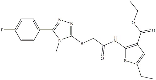 - Product Name:ethyl 5-ethyl-2-(2-((5-(4-fluorophenyl)-4-methyl-4H-1,2,4-triazol-3-yl)thio)acetamido)thiophene-3-carboxylate