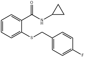 - Synonyms: Benzamide, N-cyclopropyl-2-[[(4-fluorophenyl)methyl]thio]- N-cyclopropyl-2-[(4-fluorophenyl)methylsulfanyl]benzamide