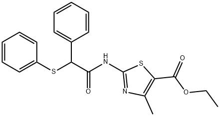 - Synonyms: ethyl 4-methyl-2-[(2-phenyl-2-phenylsulfanylacetyl)amino]-1,3-thiazole-5-carboxylate 5-Thiazolecarboxylic acid, 4-methyl-2-[[2-phenyl-2-(phenylthio)acetyl]amino]-, ethyl ester