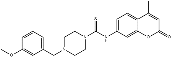 - Synonyms: 4-[(3-methoxyphenyl)methyl]-N-(4-methyl-2-oxochromen-7-yl)piperazine-1-carbothioamide 1-Piperazinecarbothioamide, 4-[(3-methoxyphenyl)methyl]-N-(4-methyl-2-oxo-2H-1-benzopyran-7-yl)-