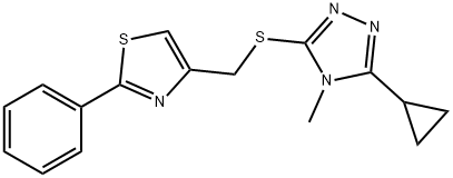 - Synonyms: 4-[(5-cyclopropyl-4-methyl-1,2,4-triazol-3-yl)sulfanylmethyl]-2-phenyl-1,3-thiazole 4H-1,2,4-Triazole, 3-cyclopropyl-4-methyl-5-[[(2-phenyl-4-thiazolyl)methyl]thio]-