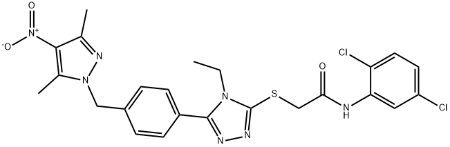 - Synonyms: N-(2,5-dichlorophenyl)-2-[[5-[4-[(3,5-dimethyl-4-nitropyrazol-1-yl)methyl]phenyl]-4-ethyl-1,2,4-triazol-3-yl]sulfanyl]acetamide Acetamide, N-(2,5-dichlorophenyl)-2-[[5-[4-[(3,5-dimethyl-4-nitro-1H-pyrazol-1-yl)methyl]phenyl]-4-ethyl-4H-1,2,4-triazol-3-yl]thio]-